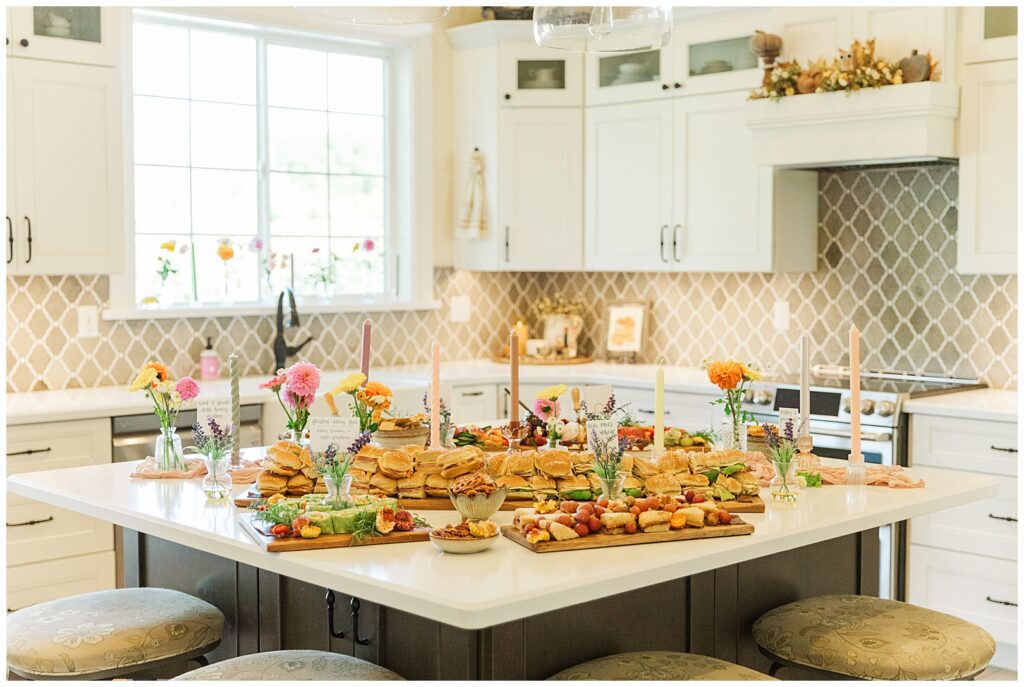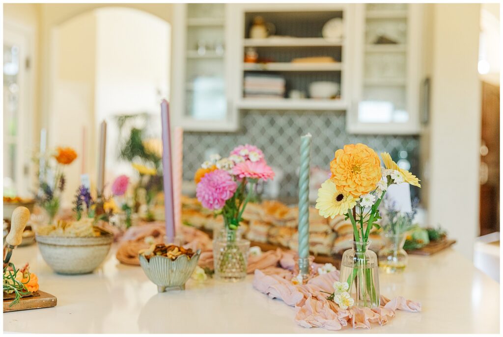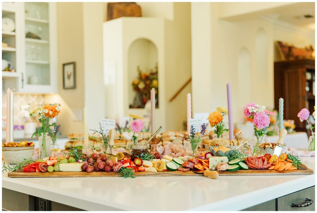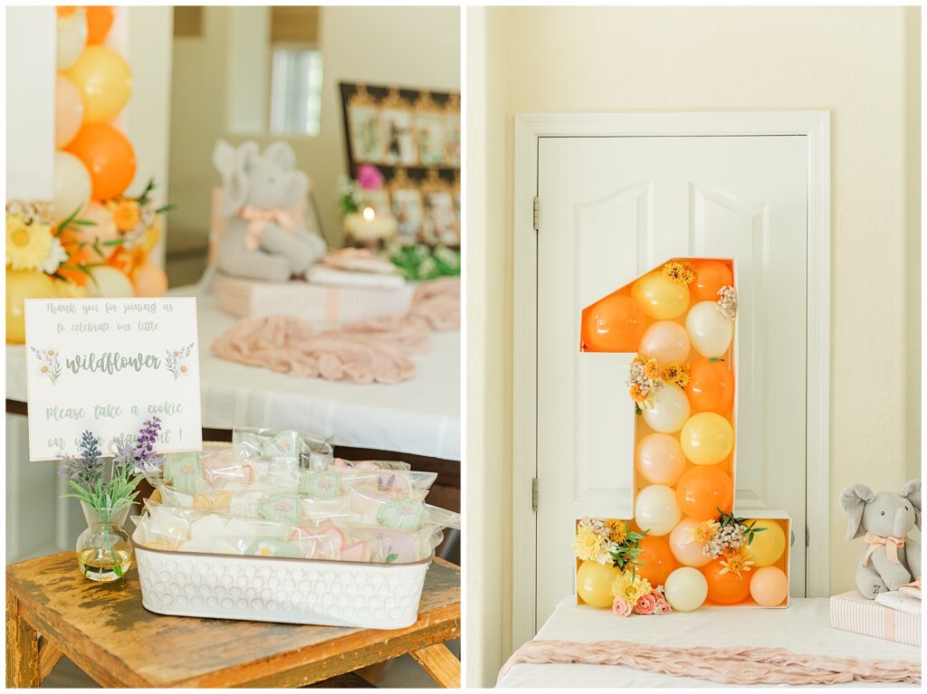 All us girls got together beforehand and decorated everything together, and it was a blast! We found ourselves knee deep in putting together bud vases, wrapping cookies, framing photos, assembling the balloon arch, twisting salami roses, and wondering “Is there such a thing as too many wildflowers?” The answer? No way!
