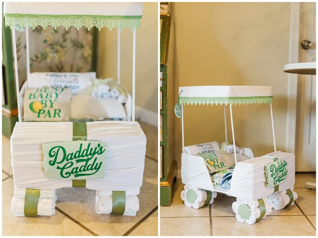 Bardeau’s mom hosted the baby shower and she did so amazing!! Every detail was just perfect! From the floral centerpieces, the beautiful blue floral pattern all over, the candles, clouds, even the kids table was amazing, all the way to the dinner spread from Postinios! Such a beautiful event! She even made a golf cart & golf bag with clubs out of diapers—so impressive!!