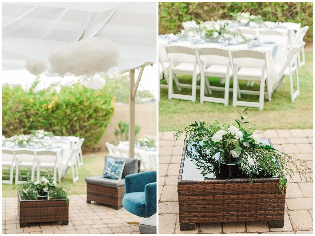 The whole weekend leading up to their shower was POURING rain … crazy storms! Nancy and I were laughing, we both were born and raised in Arizona … and it hardly ever rains! It’s just how it goes, that when you’re planning a big outdoor garden party baby shower, that’s when the heavens open up!